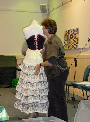 Last Thursday was the monthly meeting of Wellington Quilters Guild where the speaker was Clare Smith. She brought along the amazing costume she constructed which was based upon a portrait of a Duchess, the portrait is hanging in the Dunedin Museum.